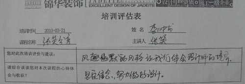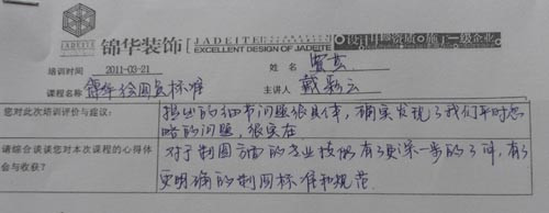 3月21日,公司在所有在編繪圖員和部分有潛力的實(shí)習(xí)生范圍中召開(kāi)了一場(chǎng)繪圖員培訓(xùn)。本次培訓(xùn)由人力資源部牽頭,首先邀請(qǐng)了研發(fā)中心戴彩云老師對(duì)繪圖員的制圖規(guī)范和標(biāo)準(zhǔn)做了講解,對(duì)每季度繪圖員上繳作品情況也做了案例分析,其次是安排了主任設(shè)計(jì)師崔堯、高級(jí)設(shè)計(jì)師單清和堂杰工作室首席設(shè)計(jì)師張笑做了培訓(xùn)分享。最后由人力資源包總闡述了設(shè)計(jì)部?jī)?chǔ)備人才的“雛鷹計(jì)劃”的具體實(shí)施步驟及考核方案。優(yōu)秀的繪圖員作為錦華內(nèi)部的設(shè)計(jì)師儲(chǔ)備人員,將會(huì)在錦華這個(gè)優(yōu)秀的平臺(tái)上得以平穩(wěn)成長(zhǎng),錦華需要的是有志向、有方法、有心態(tài)的務(wù)實(shí)性人才,只要踏實(shí)認(rèn)真一步一個(gè)腳印的遵循公司的成長(zhǎng)體系,相信,“雛鷹”終將會(huì)成長(zhǎng)為一只在錦華天空中自由翱翔“雄鷹”!