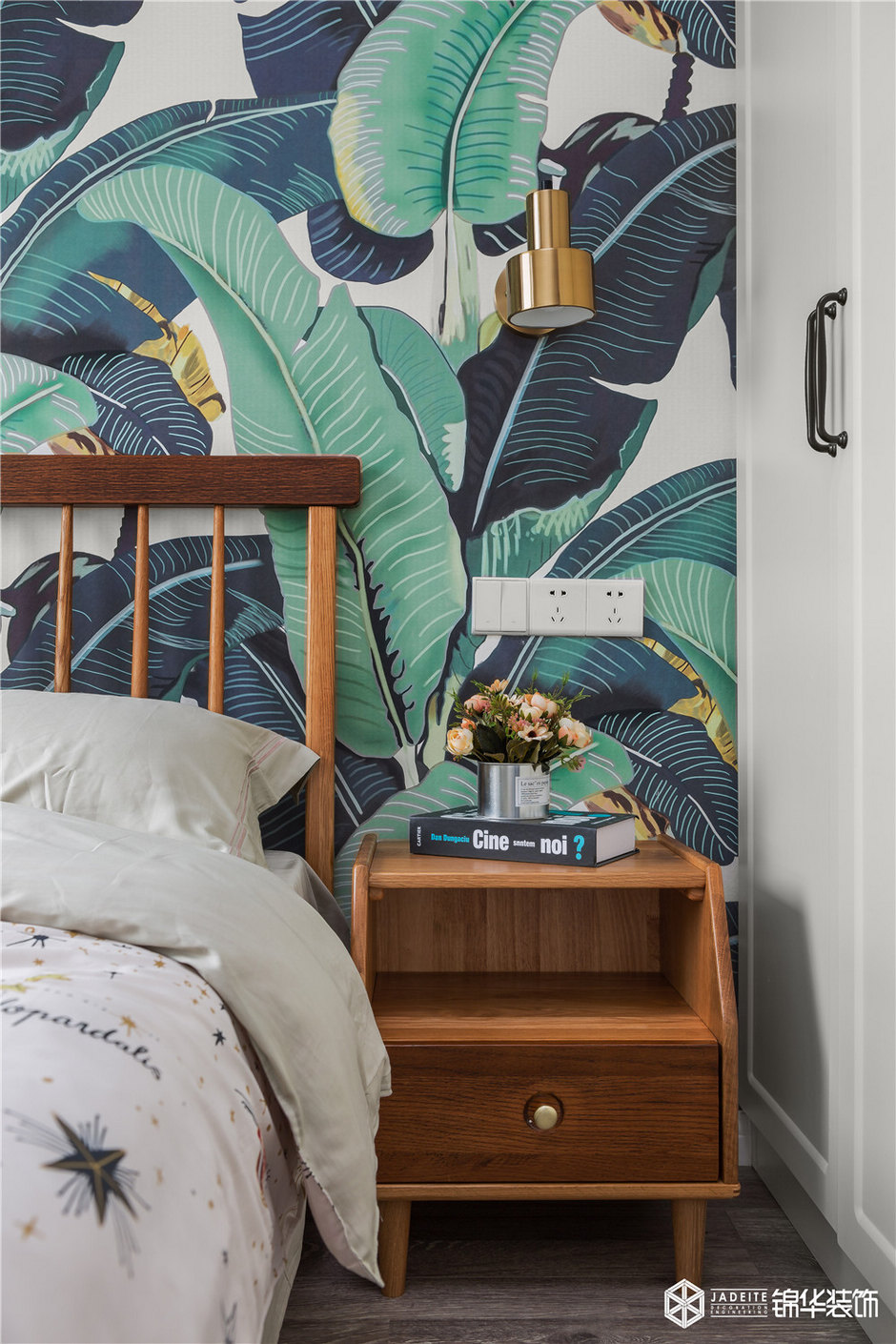 ▲這一面清新的背景墻在空間中起到了畫龍點睛的作用!