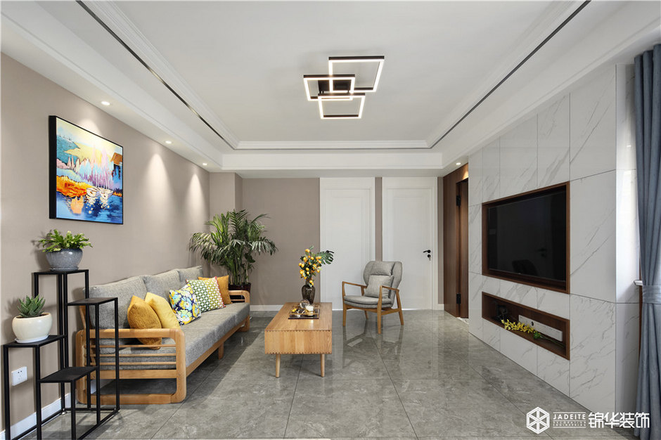 ▲客廳大面積使用木飾面板作為背景,干凈簡潔又不失質感!