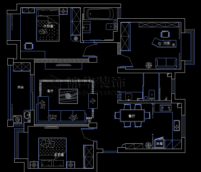 萊茵東郡沁茵苑105平米平面布置分析圖: